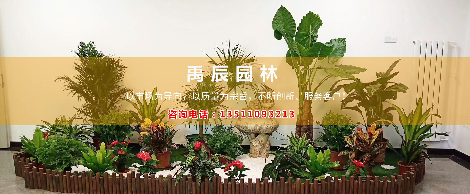 北京禹辰园林绿化工程有限公司是一家园林绿化景观设计、绿植租摆与销售、绿地养护、鲜花、花坛、园林绿化种苗生产为一体的综合性服务网站。 公司秉承“专业精神、品质至上、严格管理、服务至上”立足于北京市场,公司实行现代化管理模式,公司机构健全,管理制度完善,服务质量优良,公司下设:市场营销部、养护部、设计部、综合部等职能机构。公司拥有一批优良的园艺师和设计师,专业、敬业、乐业的员工队伍,为您提供真诚、细致的绿化服务。北京禹辰园林绿化工程有限公司愿为您真诚服务,您将置身于绿色、自然的氛围中。 公司服务宗旨:追求创新、提高品质、用爱体会、用心服务。 &nbs···...